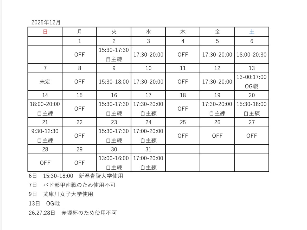 この度、練習日程に変更がありますのでお知らせいたします。