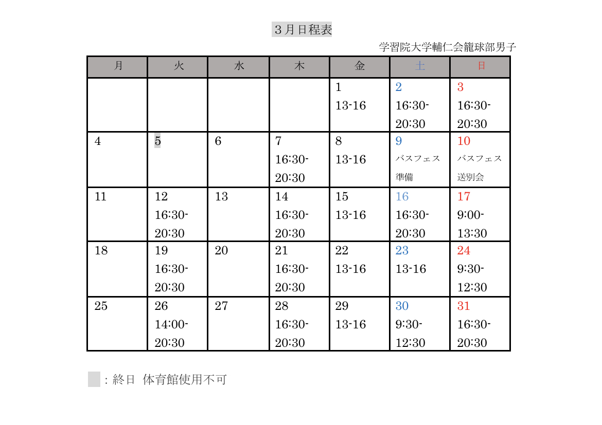 この度、桐蔭横浜大学さんのインフルエンザ流行による部活動の休止を受け、3月3日(日)に予定しておりました練習試合の中止が決定いたしましたのでご連絡させて頂きます。